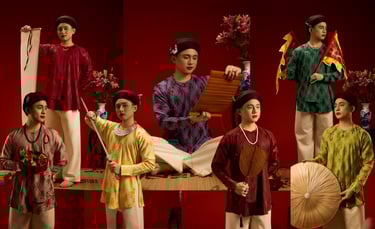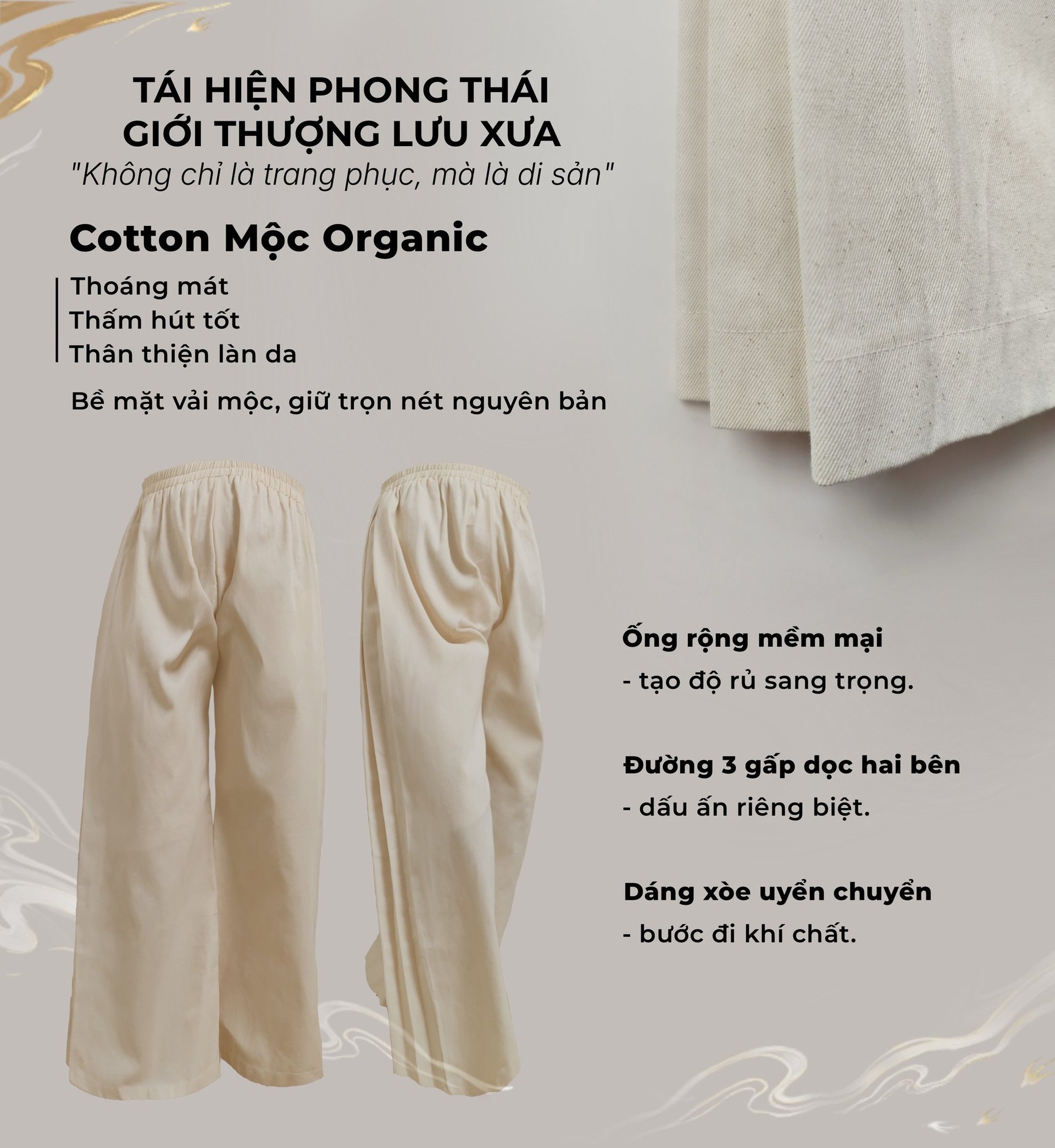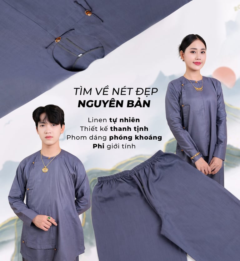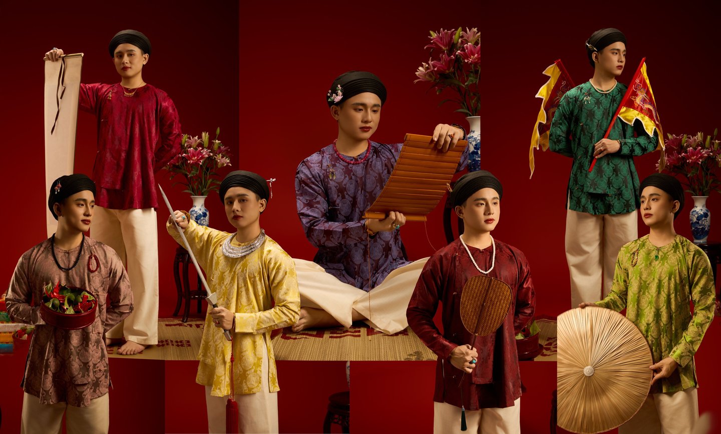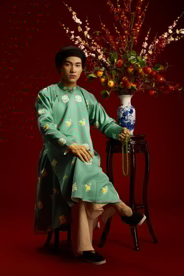 “Ngũ thân chuẩn mực – họa tiết Trường Thọ – sắc màu cát tường, kết tinh vẻ đẹp truyền thống trong diện mạo nam giới hiện đại.”